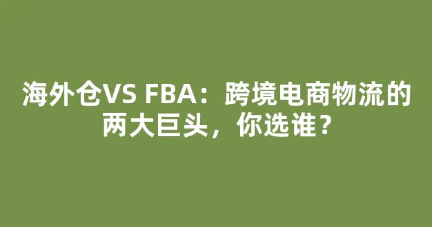 海外仓VS FBA:跨境电商物流的两大巨头,你选谁?